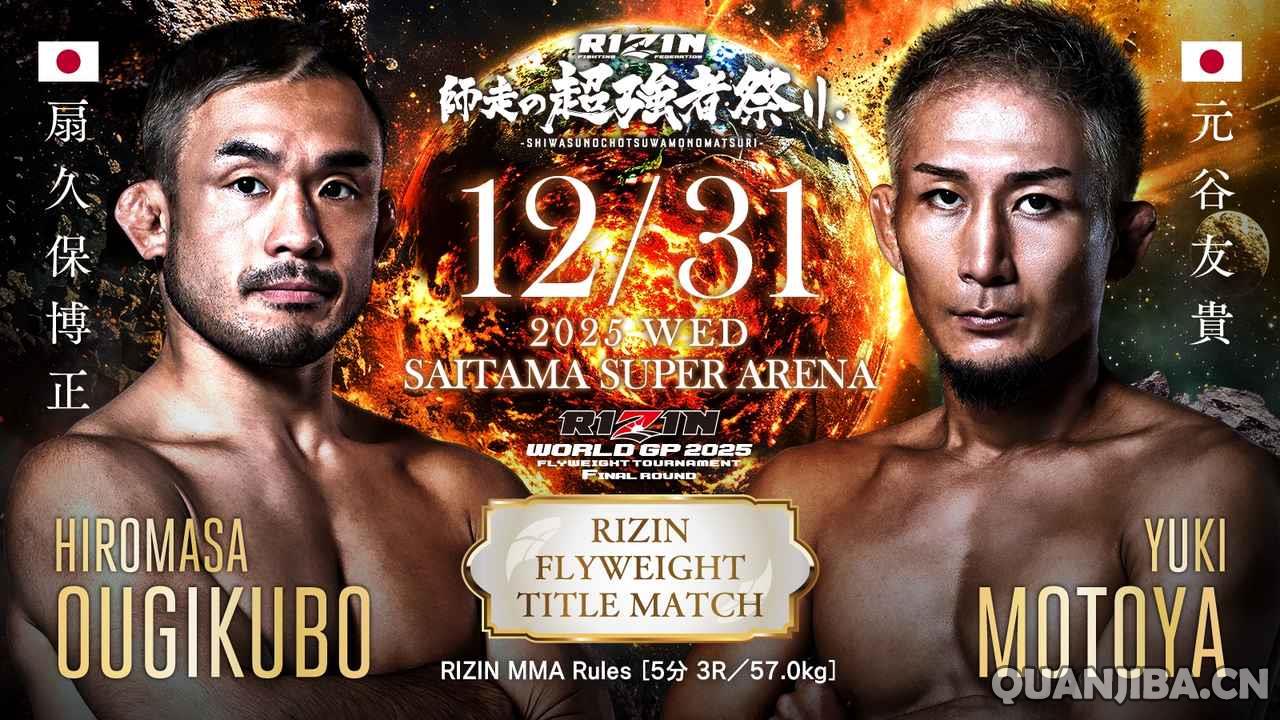 而为弥补空缺的RIZIN蝇量级冠军争夺战,2021年RIZIN雏量级大奖赛的得主扇久保博正(Hiromasa Ougikubo)(29-8-2,1 K,6 S)将和元谷友贵(Yuki Motoya)(39-12,8 UFC K,14 S,1 N)展开对决。