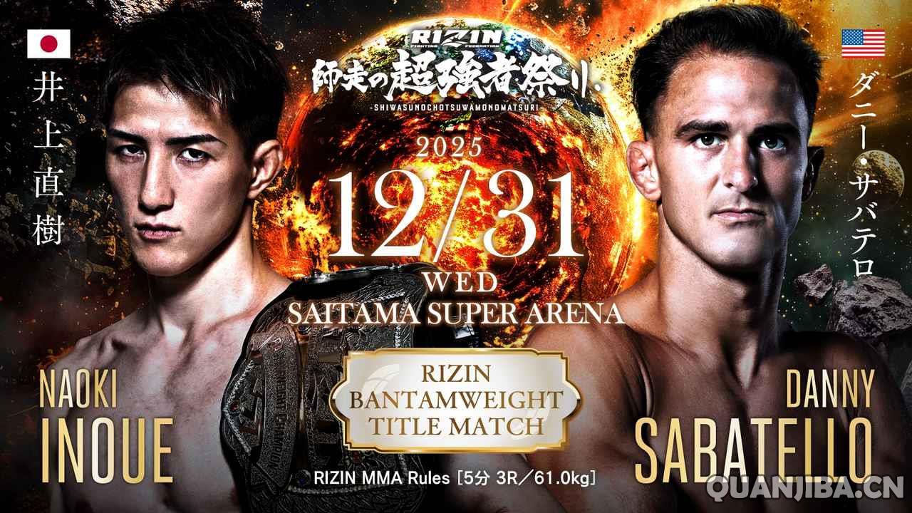 在RIZIN雏量级的冠军争夺赛中,现任冠军井上直树(Naoki Inoue)(20-4,2 K,9 S)面对着挑战者丹尼·萨巴特罗(Danny Sabatello)(16-4-1,4 K,5 S)。