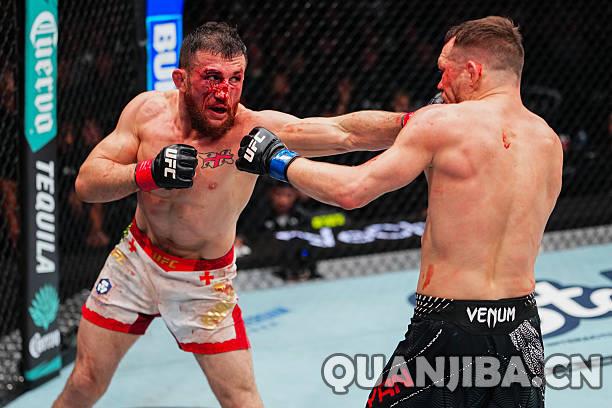 当天的主要赛事还包括UFC雏量级的冠军争夺战,现任冠军梅拉布·德瓦利什维利(21胜5负,3场KO,2场降服)挑战前冠军彼得·严(20胜5负,7场KO,1场降服)。该对决的首次交锋在2023年3月,德瓦利什维利以一致判定战胜彼得·严。这一次再战中,彼得·严展现出色,面对对手的攻势用防守与反击进行了有效应对,多次对德瓦利什维利造成重创。此役经过五轮鏖战,彼得·严以49-46、49-46和48-47的分数成功复仇,重新夺回UFC雏量级的金腰带。