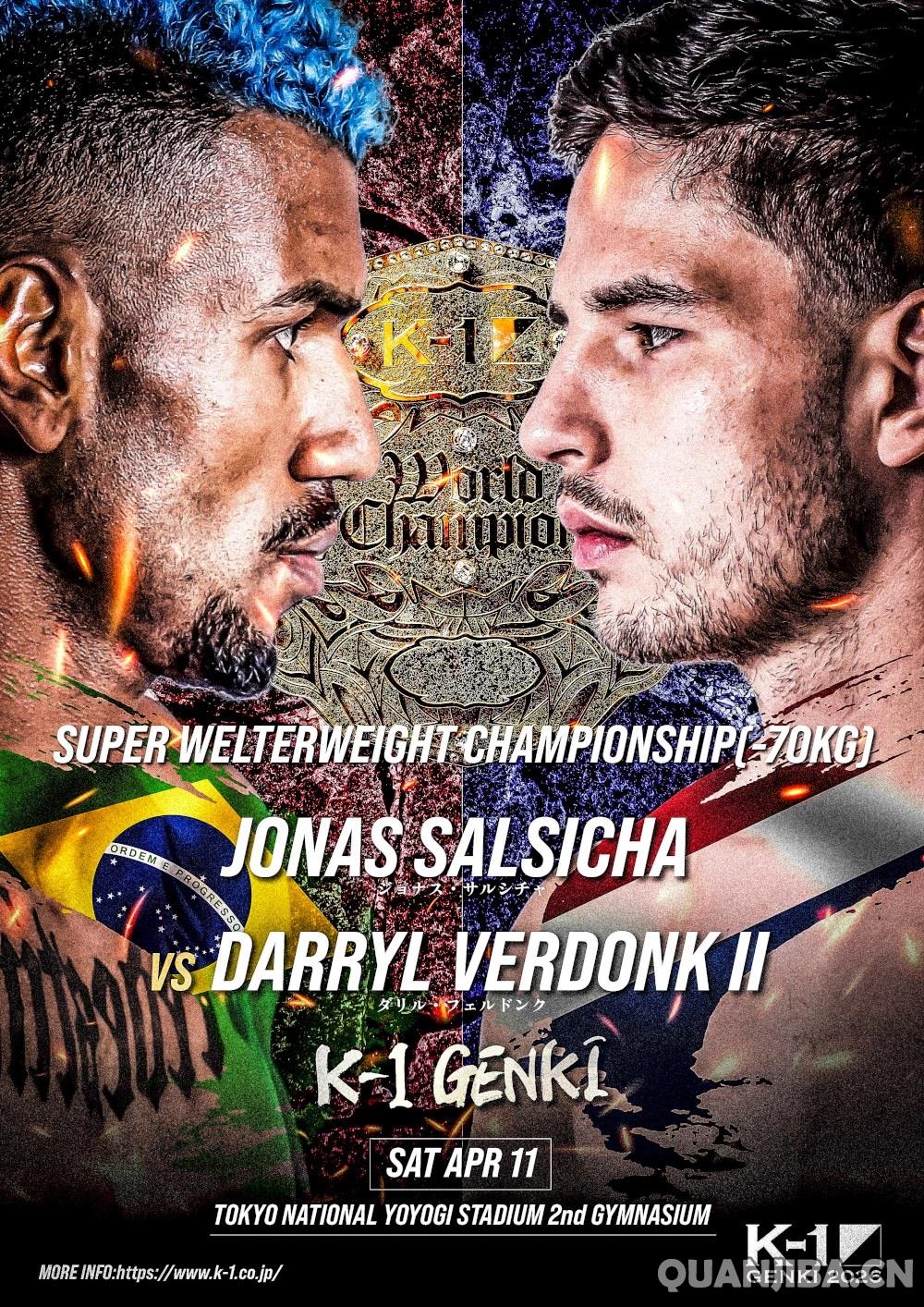 4月11日,日本东京即将举行K-1“元气”2026赛事,主办方已公布部分赛事安排。