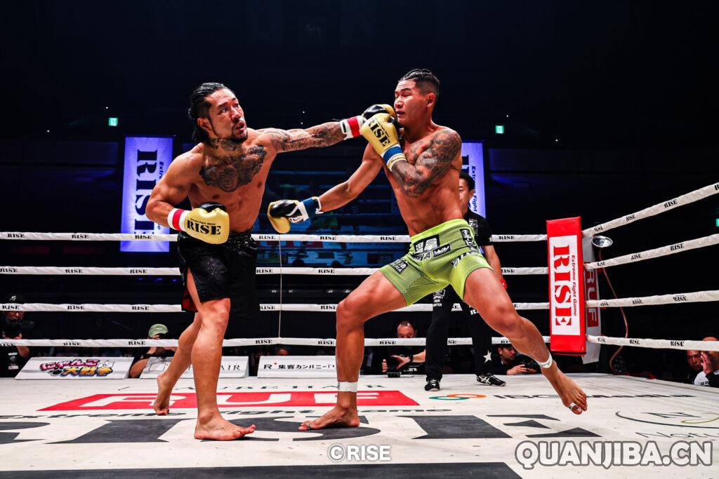本次重磅主赛是RISE-61.5kg级别的终极对决,中国新锐袁MMA鹏杰(41胜4负)迎战本土名将——曾获RISE轻量级(-63kg)冠军头衔的中村宽(Kan Nakamura)(20胜6负,14次KO,1次无效)。这已是两人的第二次交锋。第一次是在2024年9月,两人鏖战至加时第四回合,最终由中村宽以点数险胜。本场比赛依旧战况激烈,袁鹏杰前三回合泰拳技术发挥稳定,远射后撤,打击精准,但在加时赛突遭中村宽高扫读秒,遗憾失利,痛失金腰带资格。